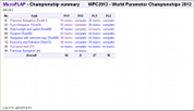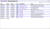 Muestra un resumen compacto e intuitivo del contenido del campeonato con enlaces a las pantallas de de diseño y análisis.